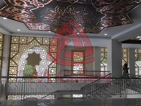 Kerajinan kaligrafi adalah semacam seni (art) penulisan huruf, yang pada umumnya di negara yang mayoritas muslim (seperti di Indonesia) seni huruf disini adalah huruf arab. Huruf arab yang ditulis sedemikian rupa sehingga menarik untuk dilihat diwujudkan dalam lempengan tembaga atau kuningan, sehingga nampak menjadi relief seni huruf arab. - Kubah Masjid